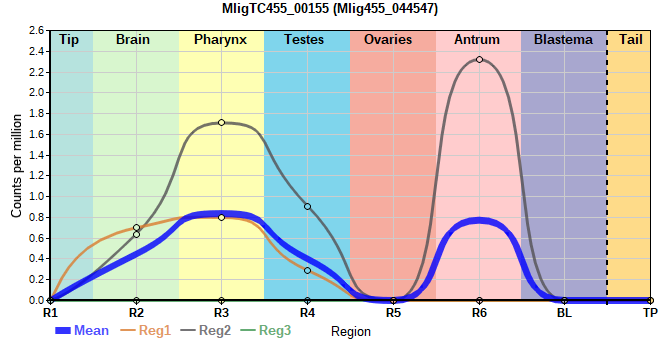 | 3. | MligTC455_49689 | 198 | 4.12 | Mlig455_011952 | Neo: - Age: logFC(26M/2M)=0.405 Region-enriched R2: 3.033/0.01796 Regeneration-downregulated R2: -3.568 Regeneration-depleted R2: -3.568 |