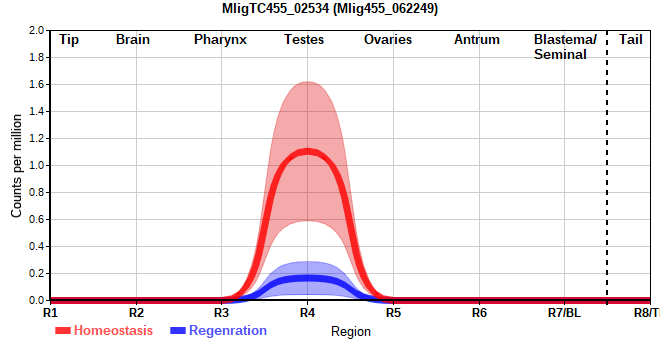 | 70. | MligTC455_21587 | 453 | 9.43 | Mlig455_029279 | Neo: Germline Age: Up-Down-Down Region-specific R4: 5.611 Regeneration-downregulated R4: -3.076 Regeneration-depleted R4: -3.076 |