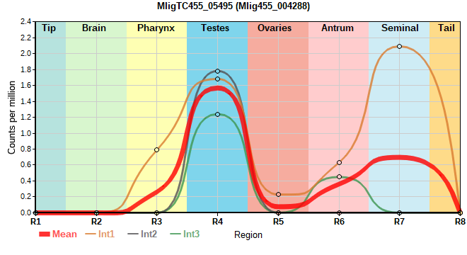 | 23. | MligTC455_11005 | 58 | 1.21 | Mlig455_016552 | Neo: Int S/G2/M Age: Up-Down-Down Region-enriched R4: 4.838/0.00052 |