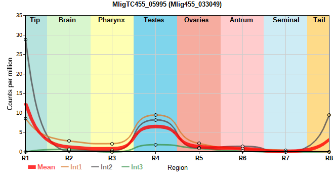 | 26. | MligTC455_49407 | 227 | 4.74 | Mlig455_020676, Mlig455_048759, Mlig455_059267 | Neo: Int S/G2/M Age: - Region-specific R4: 7.193 Region-enriched R4: 5.287/0.00552 |