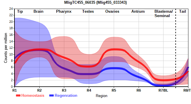 | 62. | MligTC455_48893 | 851 | 17.72 | Mlig455_008345 | Neo: - Age: Down-Up-Down Regeneration-downregulated BL: -3.366 Regeneration-depleted BL: -3.366 |