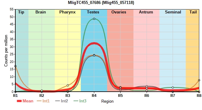 | 96. | MligTC455_34624 | 645 | 13.45 | Mlig455_035122 | Neo: - Age: - Region-specific R4: 5.120 Region-enriched R4: 2.387/0.00025 Regeneration-depleted TP: -7.299 |