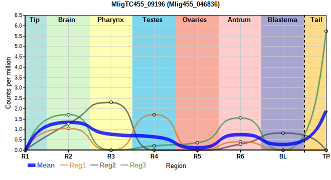 | 9. | MligTC455_42454 | 1804 | 37.58 | Mlig455_044488 | Neo: - Age: - Region-enriched R7: 3.309/0.00000 Regeneration-downregulated BL: -5.601 Regeneration-depleted BL: -5.601 |