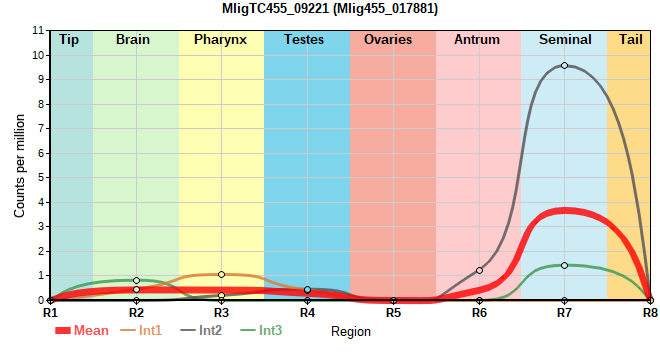 | 8. | MligTC455_10256 | 26 | 0.54 | Mlig455_023710 | Neo: - Age: - Region-enriched R4: 6.099/0.01056 |
