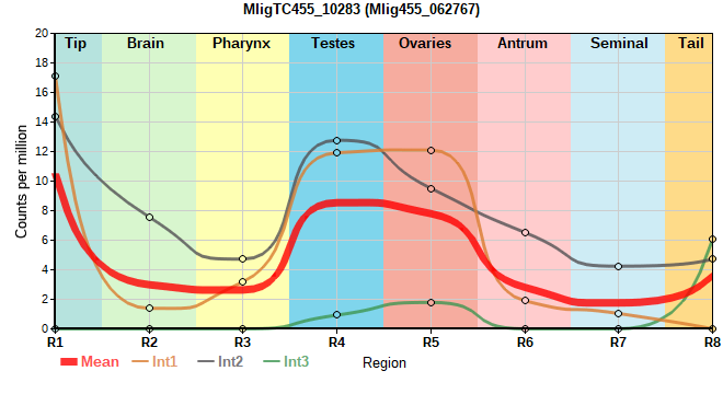 | 8. | MligTC455_54111 | 330 | 6.87 | Mlig455_031536 | Neo: Int S/G2/M Age: Down-Up-Down Region-specific R4: 4.175 Region-enriched R4: 4.555/0.00000 |