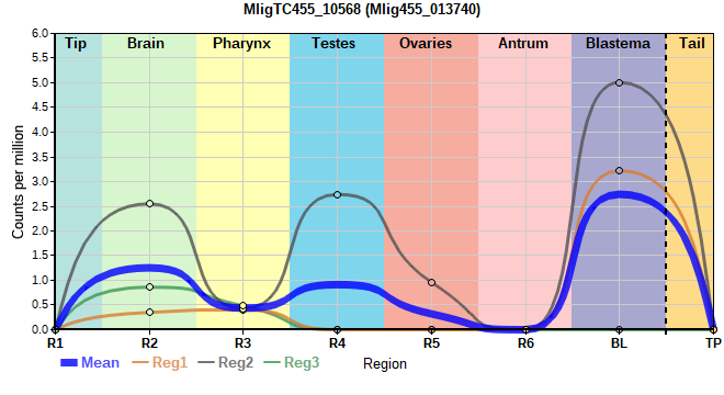 | 5. | MligTC455_45860 | 592 | 12.33 | Mlig455_068725 | Neo: - Age: - Region-enriched R5: 1.333/0.00360 Regeneration-upregulated BL: 2.131 Regeneration-enriched BL: 2.131 |