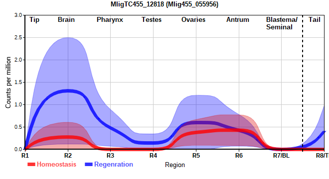 | 4. | MligTC455_29107 | 447 | 9.32 | Mlig455_064688 | Neo: - Age: Up-Down-Down Region-specific R7: 3.414 Region-enriched R7: 3.290/0.00000 Regeneration-downregulated BL: -6.721 Regeneration-depleted BL: -6.721 |