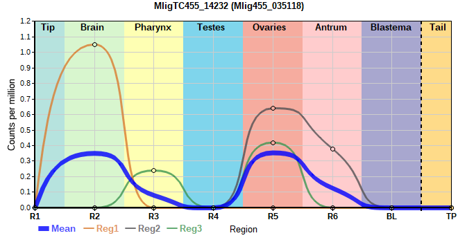 | 74. | MligTC455_24951 | 220 | 4.58 | Mlig455_052169 | Neo: - Age: - Region-specific R2: 4.554 Region-enriched R2: 4.264/0.00008 Regeneration-downregulated R2: -1.743 Regeneration-depleted R2: -1.743 |