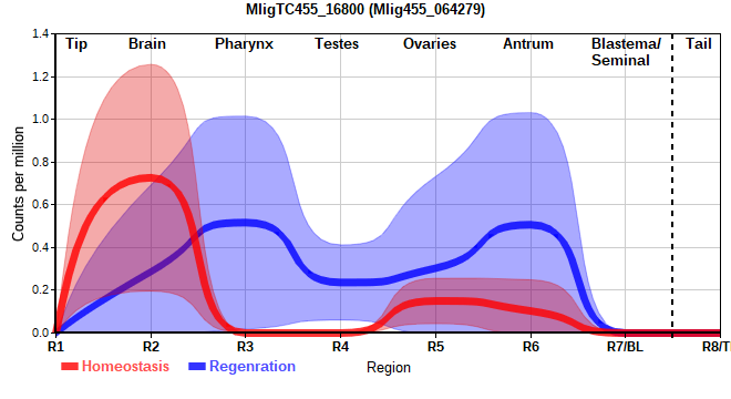 | 11. | MligTC455_24385 | 21 | 0.43 | Mlig455_066556 | Neo: - Age: Down-Up-Down Regeneration-downregulated R2: -4.596 Regeneration-depleted R2: -4.596 |