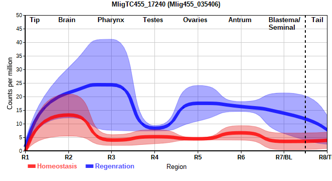 | 2. | MligTC455_14641 | 25 | 0.52 | Mlig455_023651 | Neo: - Age: - Regeneration-upregulated R2: 5.141 Regeneration-enriched R2: 5.141 |