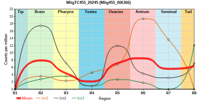 | MligTC455_20245 | 157 | 3.28 | Mlig455_006366, Mlig455_006411 | Neo: - Age: Down-Down-Up |