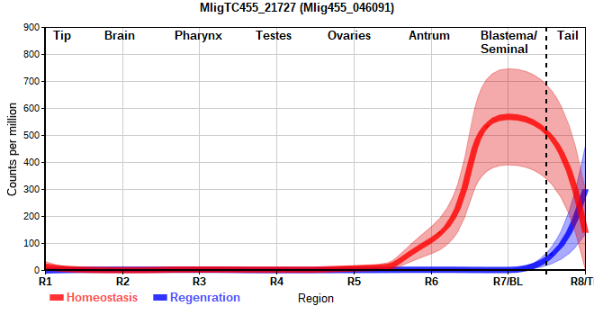 | 2. | MligTC455_22048 | 19369 | 403.53 | Mlig455_051448, Mlig455_057362, Mlig455_068158 | Neo: - Age: - Region-enriched R7: 7.979/0.00000 Regeneration-depleted BL: -8.704 |