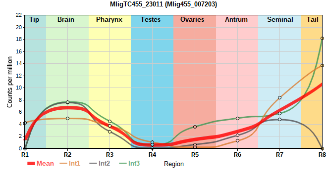 | 12. | MligTC455_44955 | 757 | 15.78 | Mlig455_029614 | Neo: Int S/G2/M Age: - Region-specific R2: 8.255 Region-enriched R2: 9.875/0.00000 |