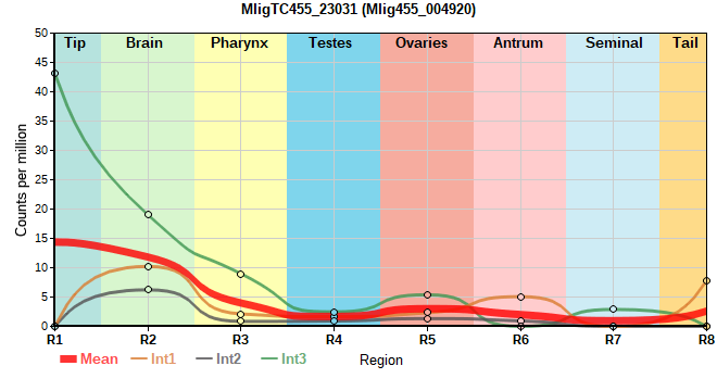 | 90. | MligTC455_34707 | 705 | 14.69 | Mlig455_047562, Mlig455_047574 | Neo: - Age: - Region-enriched R8: 2.979/0.00000 Regeneration-downregulated TP: -3.783 Regeneration-depleted TP: -3.783 |