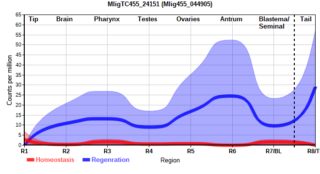 | 16. | MligTC455_34443 | 98 | 2.04 | Mlig455_039435, Mlig455_039479 | Neo: - Age: - Regeneration-upregulated TP: 7.654 Regeneration-enriched TP: 7.654 |