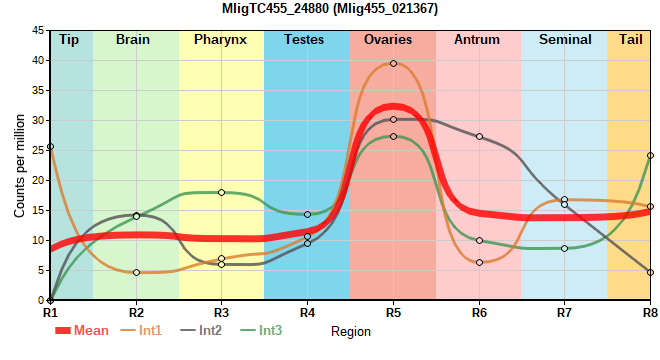 | 3. | MligTC455_39909 | 541 | 11.27 | Mlig455_047549 | Neo: Int S/G2/M Age: - Region-enriched R5: 1.342/0.02865 |