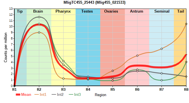 | 7. | MligTC455_24523 | 144 | 2.99 | Mlig455_010636, Mlig455_010724 | Neo: - Age: - Region-enriched R2: 9.355/0.00000 |