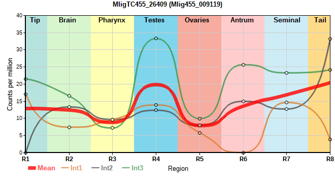 | 37. | MligTC455_31291 | 845 | 17.6 | Mlig455_013887, Mlig455_057722 | Neo: - Age: Down-Up-Down, logFC(26M/2M)=-0.442 Region-enriched R8: 1.865/0.01323 |