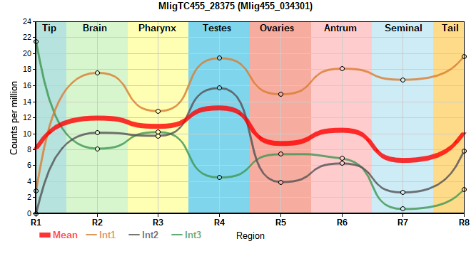 | 96. | MligTC455_44510 | 380 | 7.92 | Mlig455_016691 | Neo: - Age: Up-Down-Up Region-enriched R3: 2.041/0.03837 |