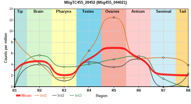 | 2. | MligTC455_41029 | 315 | 6.57 | Mlig455_001243 | Neo: Int S/G2/M Age: - Region-enriched R5: 1.532/0.00118 |