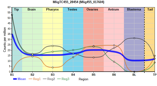 | 4. | MligTC455_50095 | 2575 | 53.65 | Mlig455_010500 | Neo: - Age: Down-Down-Up, logFC(26M/2M)=-0.219 Regeneration-upregulated R6: 1.044 Regeneration-enriched R6: 1.044 |