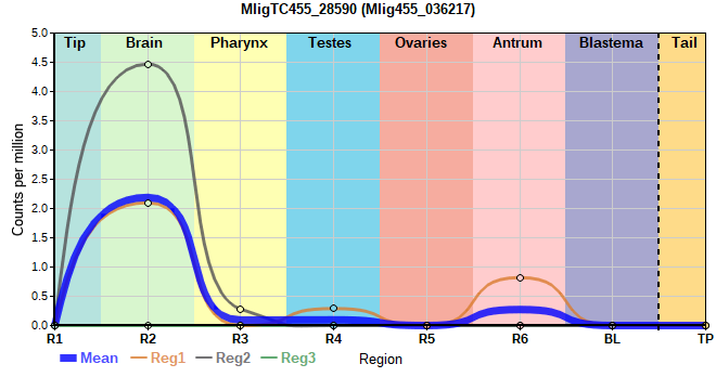 | 84. | MligTC455_37931 | 21 | 0.43 | Mlig455_066138 | Neo: - Age: - Region-enriched R5: 3.782/0.00367 |
