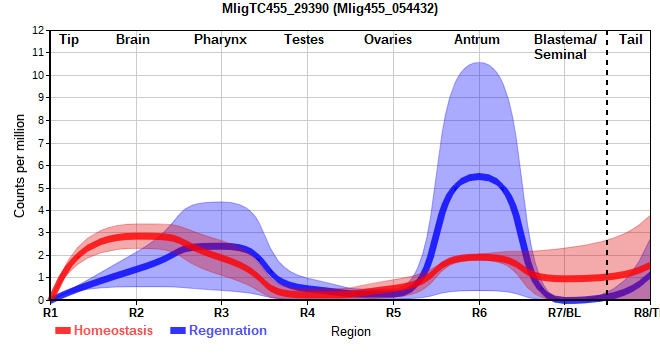 | 6. | MligTC455_22299 | 80 | 1.66 | Mlig455_036117, Mlig455_036152 | Neo: - Age: - Region-enriched R2: 5.778/0.00200 Regeneration-upregulated R6: 5.934 Regeneration-enriched R6: 5.934 |