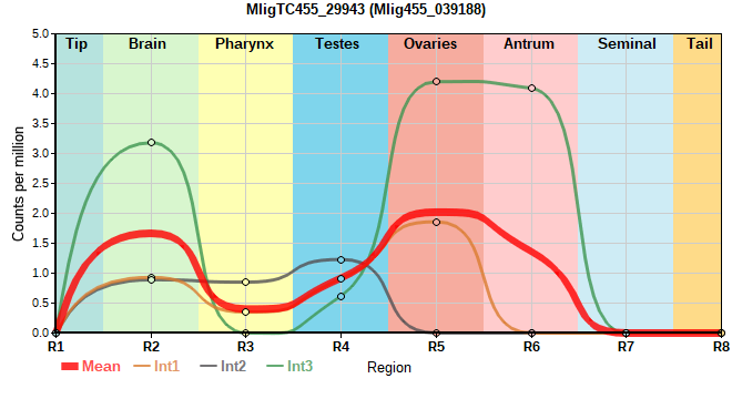| 2. | MligTC455_21527 | 366 | 7.63 | Mlig455_015345, Mlig455_068780 | Neo: - Age: Up-Down-Up |