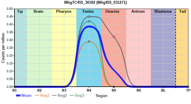 | 25. | MligTC455_49407 | 227 | 4.74 | Mlig455_020676, Mlig455_048759, Mlig455_059267 | Neo: Int S/G2/M Age: - Region-specific R4: 7.193 Region-enriched R4: 5.287/0.00552 |