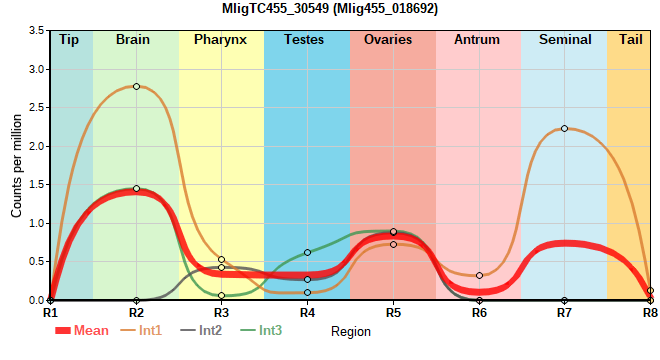 | 74. | MligTC455_35364 | 266 | 5.55 | Mlig455_070630 | Neo: Germline Age: Up-Down-Down, logFC(26M/2M)=-0.469 Region-specific R4: 5.666 Region-enriched R4: 2.478/0.00879 |