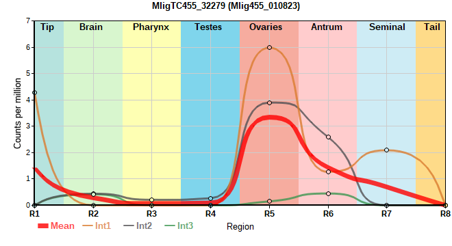 | 17. | MligTC455_11749 | 101 | 2.1 | Mlig455_045318 | Neo: Int S/G2/M Age: - Region-enriched R5: 4.197/0.00000 |