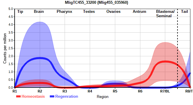 | 35. | MligTC455_43173 | 392 | 8.16 | Mlig455_037383 | Neo: - Age: Up-Down-Down Regeneration-downregulated TP: -5.031 Regeneration-depleted TP: -5.031 |