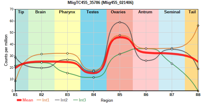 | 52. | MligTC455_23260 | 367 | 7.64 | Mlig455_048753 | Neo: Int S/G2/M Age: Up-Down-Up Region-enriched R5: 2.722/0.00477 |