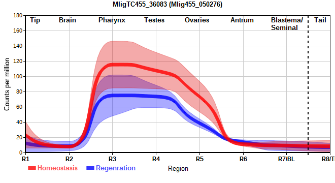 | 27. | MligTC455_15187 | 713 | 14.85 | Mlig455_042720, Mlig455_042822 | Neo: - Age: - Region-enriched R7: 3.051/0.00000 Regeneration-downregulated BL: -2.302 Regeneration-depleted BL: -2.302 |