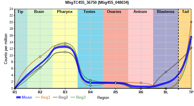 | 8. | MligTC455_04509 | 308 | 6.42 | Mlig455_015097, Mlig455_015215 | Neo: - Age: - Region-enriched R3: 2.768/0.00001 Regeneration-downregulated BL: -7.255 Regeneration-depleted BL: -7.255 |