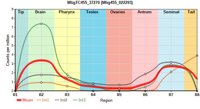 | 3. | MligTC455_48713 | 380 | 7.92 | Mlig455_009259, Mlig455_009268 | Neo: - Age: Down-Up-Down Region-specific R2: 6.962 Region-enriched R2: 4.845/0.00046 |