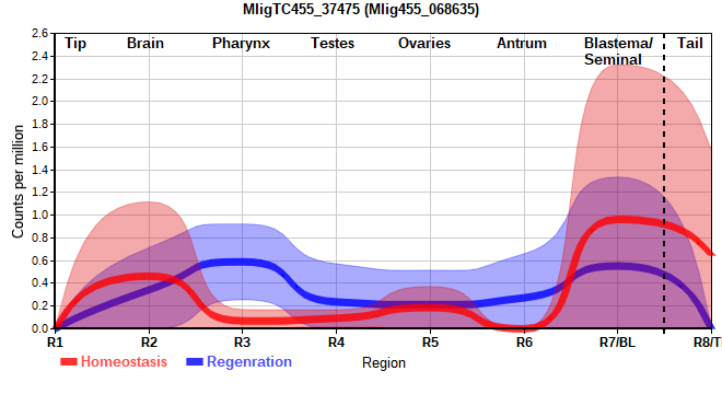 | 27. | MligTC455_46582 | 6815 | 141.97 | Mlig455_027253, Mlig455_027264 | Neo: - Age: - Region-enriched R8: 2.137/0.00000 Regeneration-downregulated TP: -1.999 Regeneration-depleted TP: -1.999 |