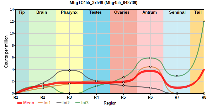 | 53. | MligTC455_14109 | 28 | 0.58 | Mlig455_046796, Mlig455_063515 | Neo: - Age: - Region-enriched R5: 3.367/0.04013 |