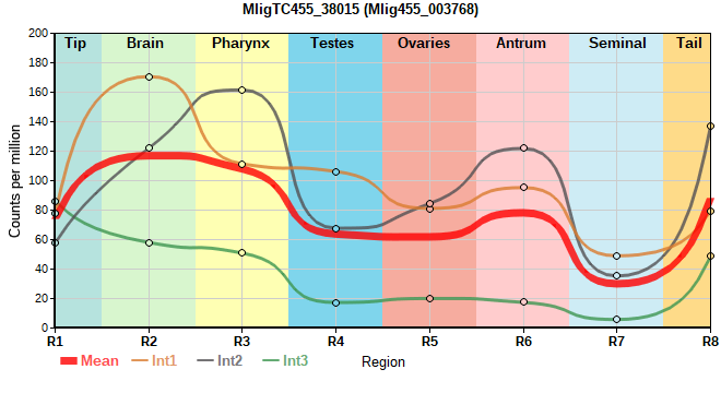 | 17. | MligTC455_25753 | 134 | 2.8 | Mlig455_040394 | Neo: - Age: Up-Down-Up Region-enriched R4: 2.927/0.00231 |