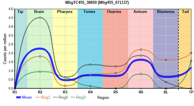 | 27. | MligTC455_30491 | 31 | 0.65 | Mlig455_008764 | Neo: Int S/G2/M Age: Up-Down-Down Region-enriched R4: 5.721/0.00005 |