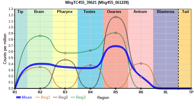 | 31. | MligTC455_37966 | 132 | 2.75 | Mlig455_068209 | Neo: Int S/G2/M Age: - Region-enriched R5: 3.816/0.00001 Regeneration-upregulated R3: 5.497 Regeneration-enriched R3: 5.497 |