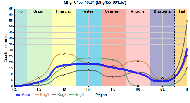 | 6. | MligTC455_52153 | 266 | 5.53 | Mlig455_024583 | Neo: - Age: Up-Down-Up Regeneration-upregulated TP: 5.694 Regeneration-enriched TP: 5.694 |