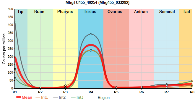 | 32. | MligTC455_39233 | 917 | 19.11 | Mlig455_042605, Mlig455_042651 | Neo: Germline Age: Up-Down-Up, logFC(26M/2M)=0.353 Region-specific R4: 5.721 Region-enriched R4: 3.719/0.00004 |