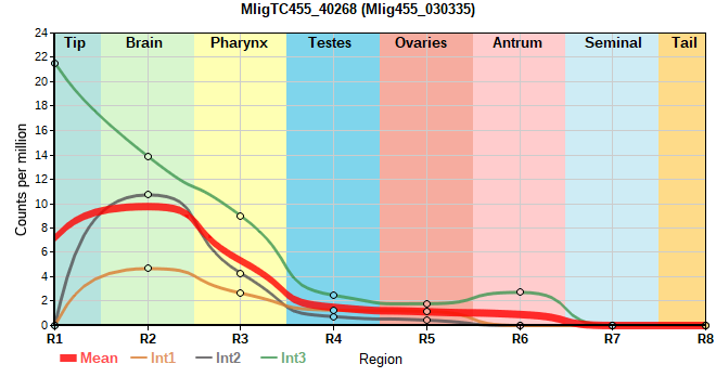 | 57. | MligTC455_18695 | 490 | 10.22 | Mlig455_008630, Mlig455_030294 | Neo: - Age: logFC(26M/2M)=0.299 |