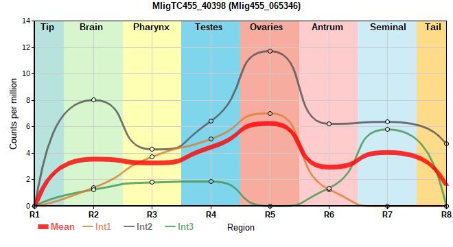 | 3. | MligTC455_16448 | 9758 | 203.29 | Mlig455_027874 | Neo: - Age: Down-Up-Up, logFC(26M/2M)=3.684 Region-enriched R4: 4.613/0.02967 Regeneration-upregulated BL: 7.081 Regeneration-enriched BL: 7.081 |
