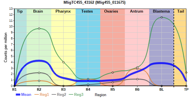| 2. | MligTC455_39463 | 228 | 4.76 | Mlig455_025914, Mlig455_025946 | Neo: - Age: - Regeneration-downregulated R4: -3.846 Regeneration-depleted R4: -3.846 |