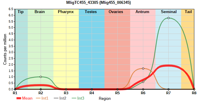 | 5. | MligTC455_22430 | 83 | 1.73 | Mlig455_045724 | Neo: - Age: Down-Up-Down Region-enriched R7: 3.321/0.03722 |