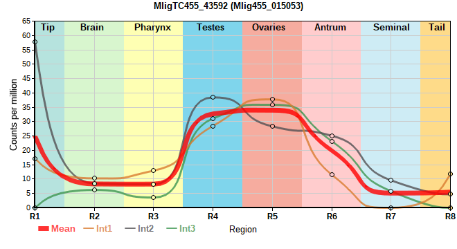 | MligTC455_43592 | 956 | 19.92 | Mlig455_015053 | Neo: Neoblast, stringent Age: - Region-enriched R5: 1.464/0.00058 |