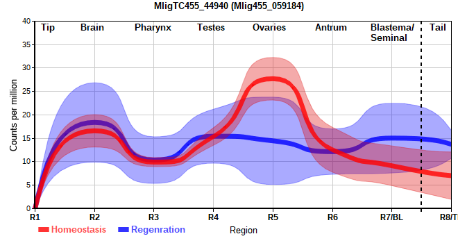 | 7. | MligTC455_42312 | 980 | 20.41 | Mlig455_062927 | Neo: Germline Age: - Region-specific R4: 2.105 Regeneration-downregulated R4: -2.203 Regeneration-depleted R4: -2.203 |