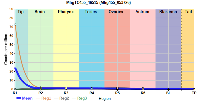 | 50. | MligTC455_44245 | 447 | 9.32 | Mlig455_012825 | Neo: Neoblast Age: - Region-enriched R5: 1.597/0.00103 |
